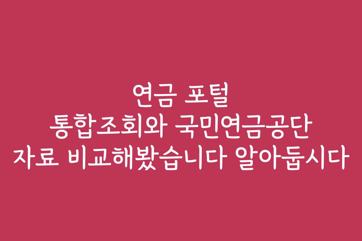 연금 포털 통합조회와 국민연금공단 자료를 비교하여, 다양한 정보를 한곳에서 확인할 수 있는 방법을 알아보겠습니다. 많은 사람들이 연금 관련 정보를 찾고 있지만, 정보가 복잡해 혼란스러워 하기도 합니다. 연금 포털을 활용하는 방법을 통해 보다 쉽게 연금 정보를 관리하는 방법을 설명드립니다.