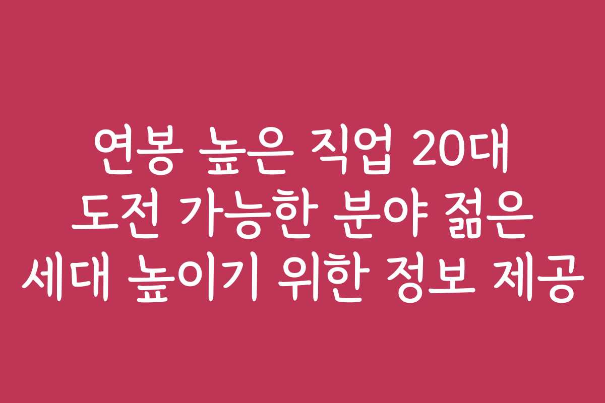 연봉 높은 직업 20대 도전 가능한 분야 젊은 세대 높이기 위한 정보 제공