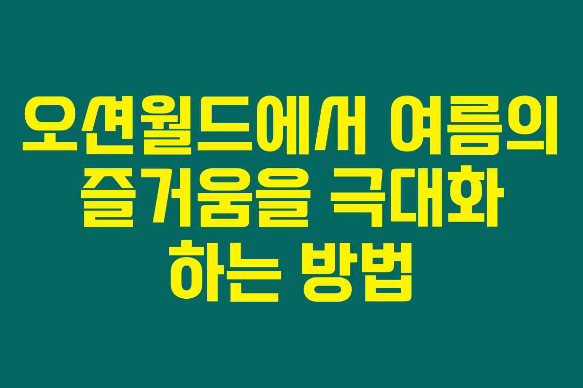 오션월드에서 즐거운 여름을 보내길 바라며, 다양한 할인 정보를 활용해 현명하게 이용하시기 바랍니다. 여름엔 오션월드에서 신나는 시간을 보내보세요!