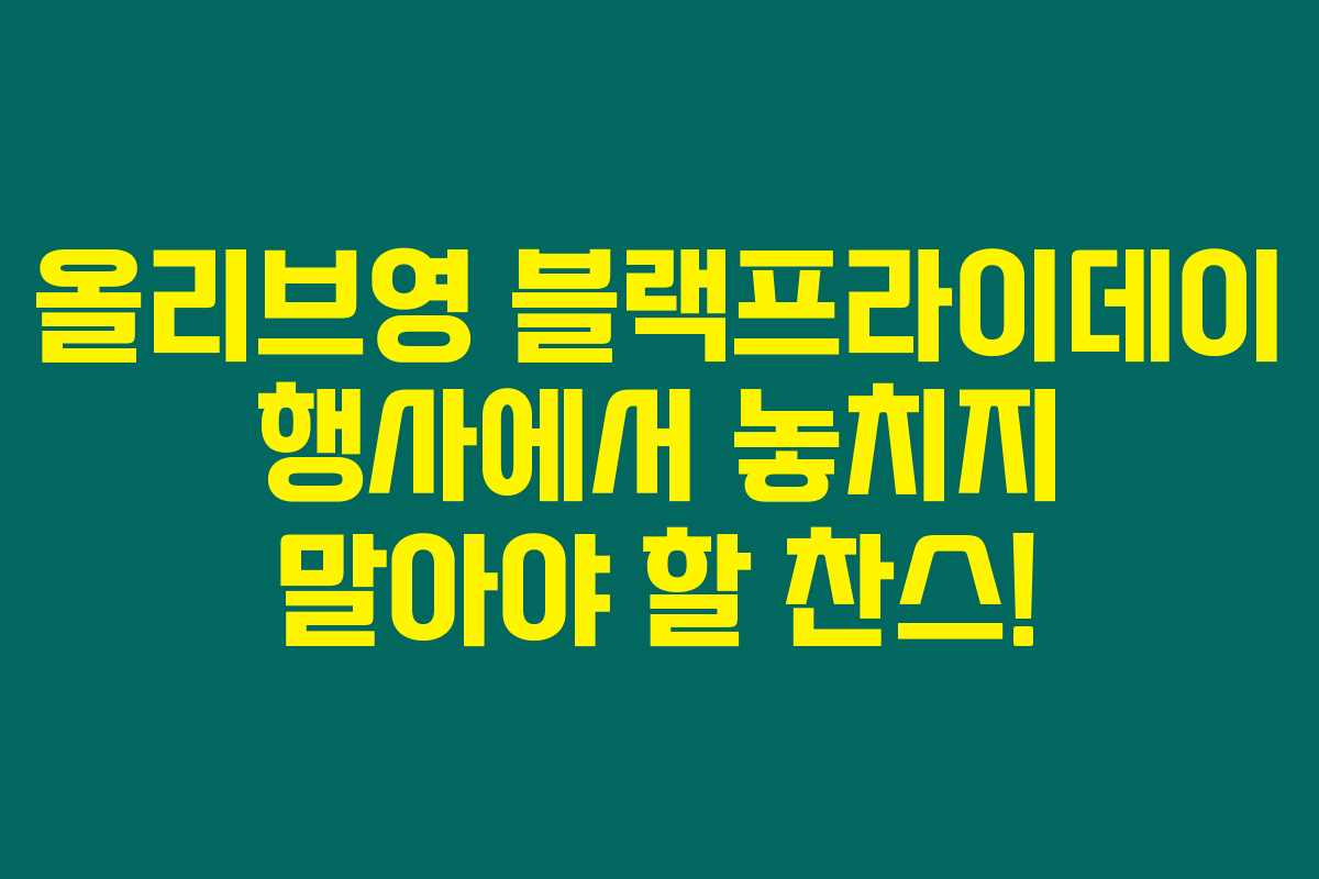 이번 올리브영 블랙프라이데이는 정말 놓치면 안 될 기회니까 빠르게 동참해 보세요! 저도 여러 제품을 구매하려고 준비하고 있답니다. 여러분도 즐거운 쇼핑 되길 바랄게요!