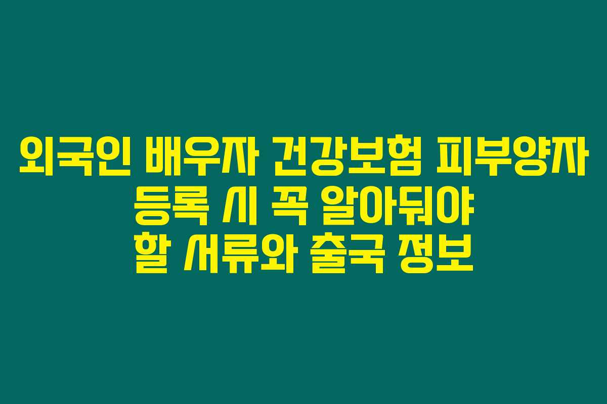 외국인 배우자 건강보험 피부양자 등록을 고려하고 계시다면 이 글을 참고하세요. 특히 F-5 비자를 소지한 외국인 배우자의 경우, 필요한 서류와 절차가 다소 복잡할 수 있습니다. 특히 출국 시 유의해야 할 사항도 있으니, 이 글을 읽어보시면 많은 도움이 될 거에요.