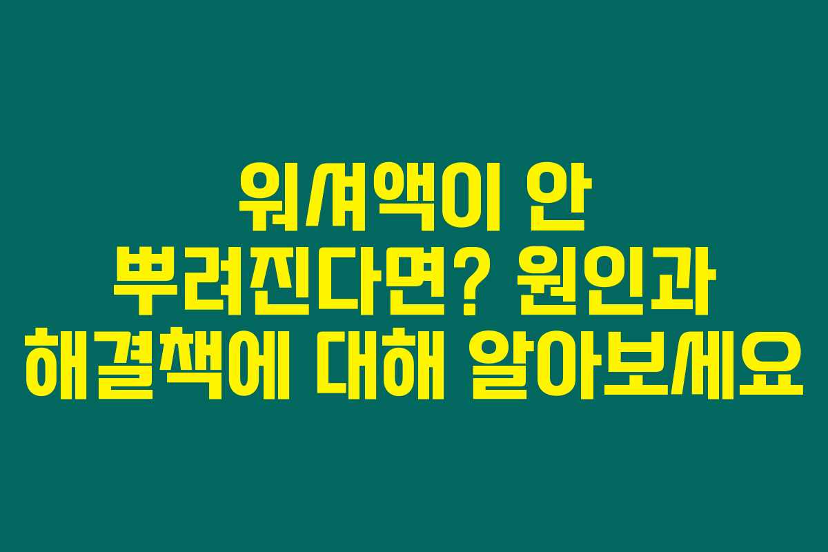 제가 직접 경험해본 결과로는, 자동차를 운전하는 중에 “워셔액이 안 뿌려진다”는 것은 꽤나 불편한 상황입니다. 특히 시야를 확보하는 데 필요한 워셔액이 작동하지 않으면 더욱 불안할 수 있습니다. 아래를 읽어보시면 워셔액이 안 뿌려지는 원인과 그에 대한 해결 방법을 상세히 안내해 드리겠습니다.