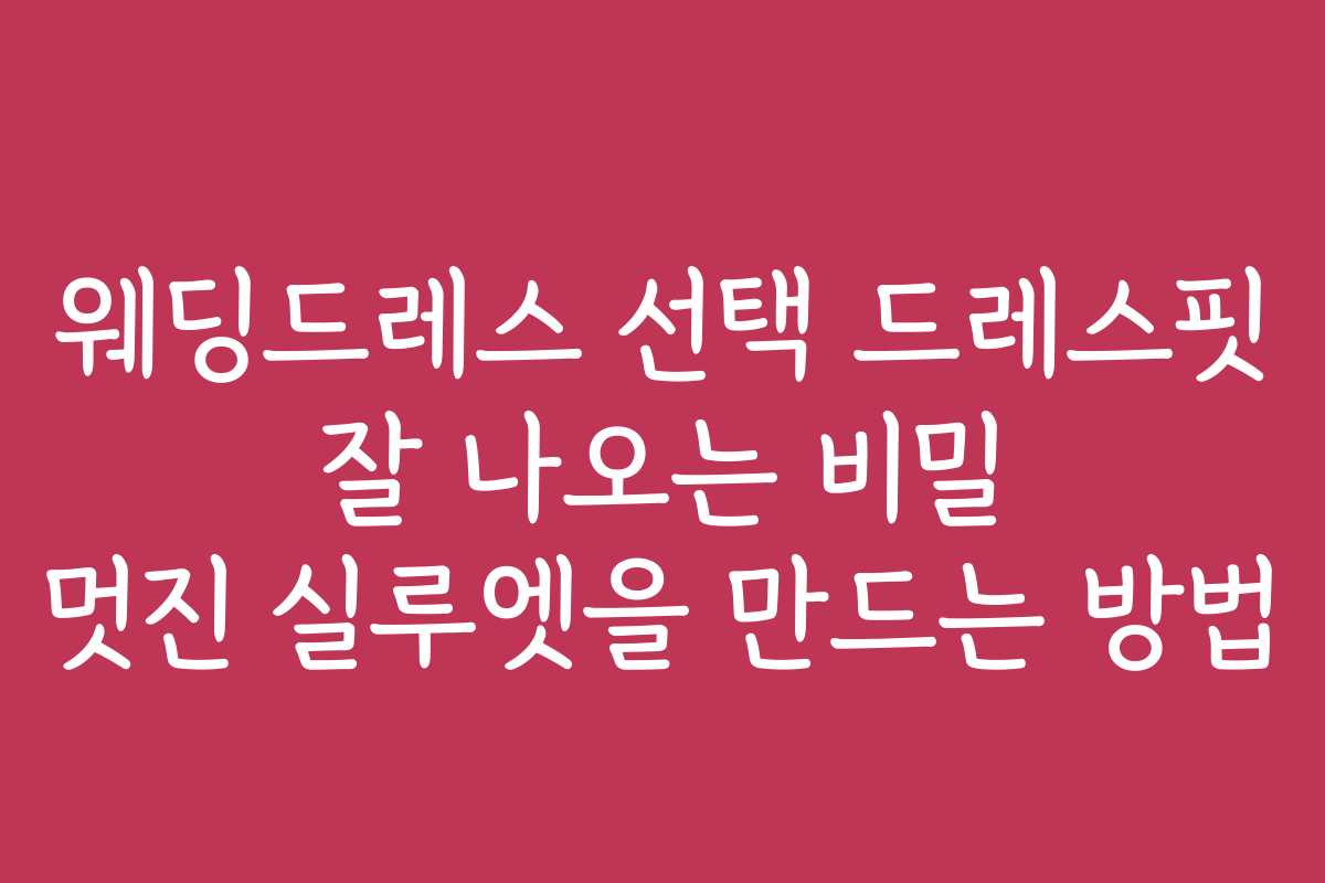 웨딩드레스 선택 드레스핏 잘 나오는 비밀과 멋진 실루엣을 만드는 방법은 결혼식 준비에서 매우 중요합니다. 자신에게 맞는 드레스를 선택하고, 그것을 완벽하게 소화하기 위해 노력해보세요!