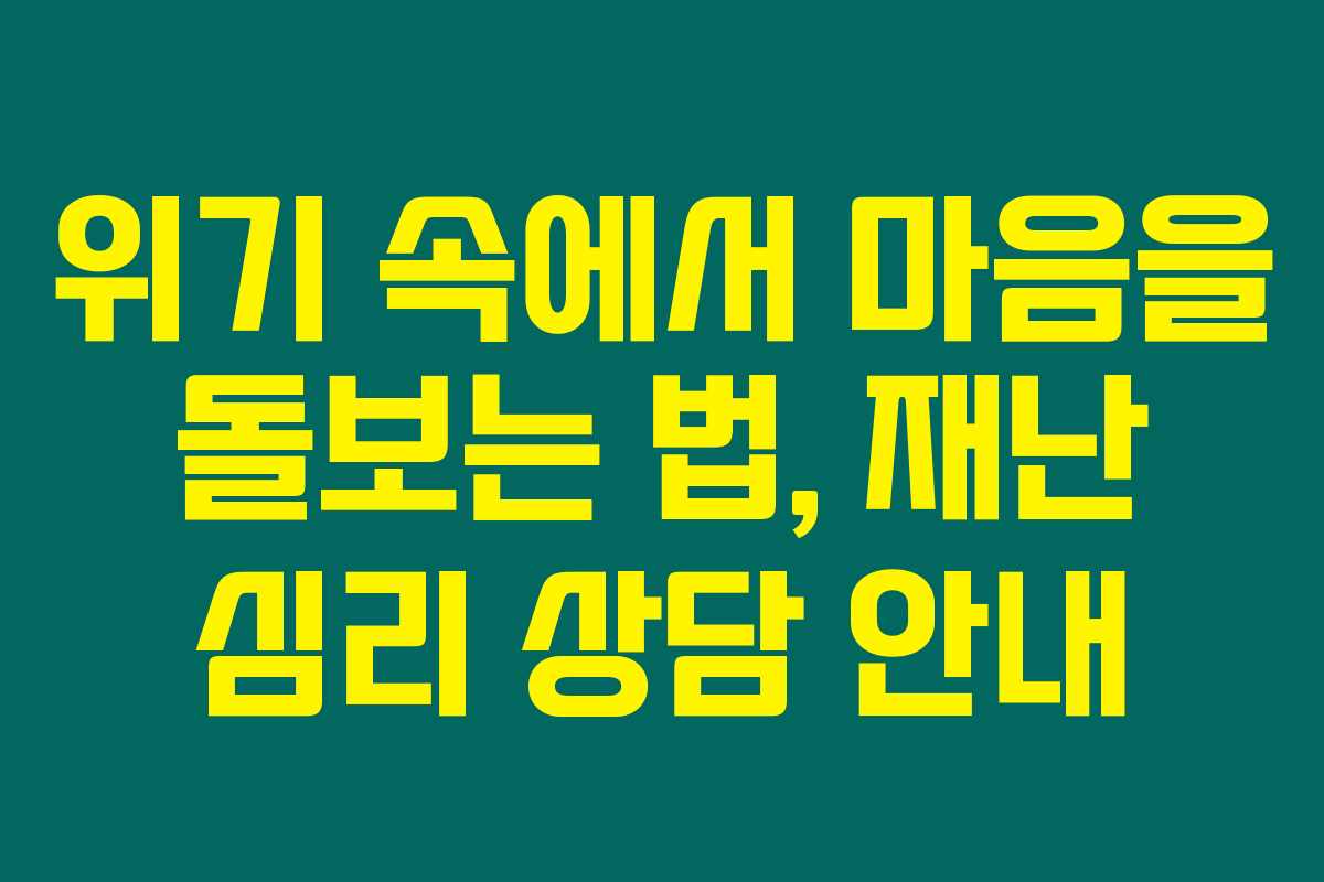 위기 상황은 누구에게나 찾아올 수 있지만, 재난 심리 상담을 통해 함께 이겨낼 수 있어요. 여러분의 마음이 안전해지길 바라며, 꼭 주변의 도움을 받는 것을 잊지 마세요!