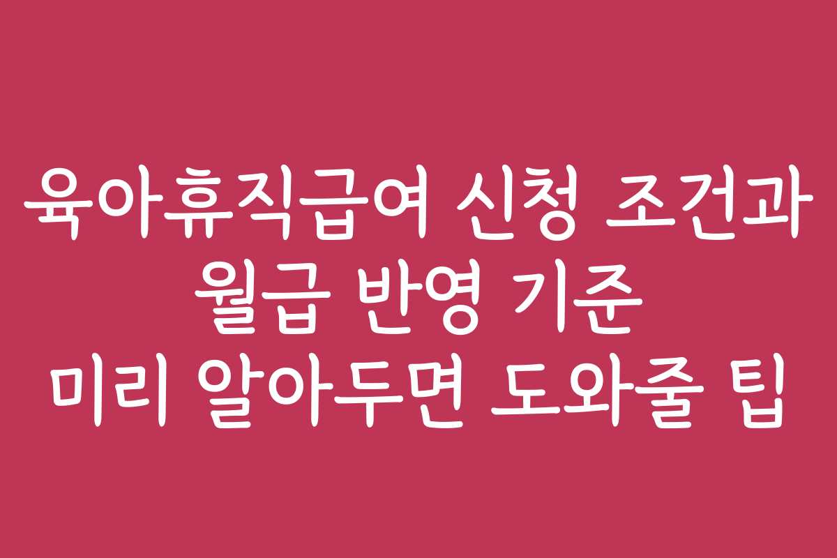 육아휴직급여 신청 조건과 월급 반영 기준 미리 알아두면 도와줄 팁