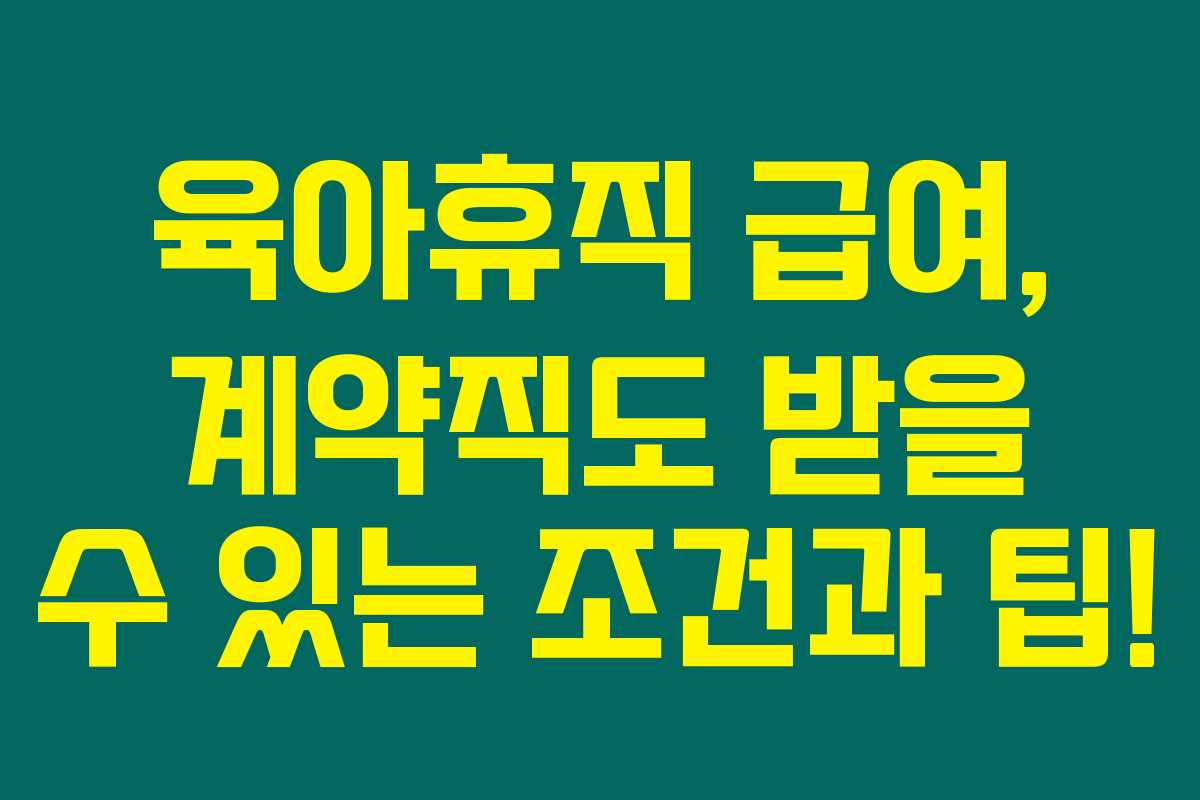 제가 직접 경험해본 결과, 육아휴직과 관련된 급여와 계약직 근로자도 받을 수 있는 방법에 대해 자세히 알아보았습니다. 아래를 읽어보시면 육아휴직에 대한 모든 궁금증을 해결할 수 있을 거예요. 육아휴직은 모든 부모, 특히 일하는 엄마와 아빠에게 매우 중요한 제도죠. 그렇기 때문에 제대로 된 정보를 아는 것이 필수랍니다.