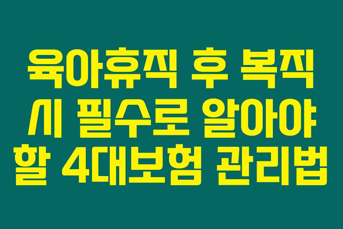 육아휴직 후 복직하면서 4대보험이 어떻게 처리되는지 궁금하신 분들을 위해, 제가 직접 경험해본 결과로는 육아휴직과 복직 후 4대보험 관련 정보를 치밀하게 파악하는 것이 중요하다는 것을 느꼈어요. 아래를 읽어보시면, 육아휴직 복직과 관련된 4대보험의 다양한 궁금증을 해소하는 데 도움이 되실 것입니다.