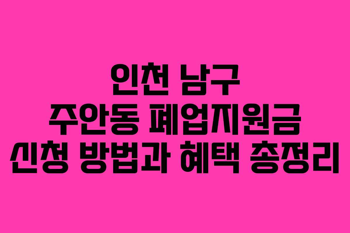 폐업은 자영업자와 소상공인에게 매우 힘든 상황을 초래합니다. 이럴 때 가장 큰 도움이 되는 것이 바로 폐업지원금입니다. 인천 남구 주안동 지역에서도 이러한 지원금을 통해 경제적 부담을 줄이고 새로운 시작을 할 수 있는 기회를 제공받을 수 있습니다. 이제 폐업지원금의 신청 방법과 혜택에 대해 알아보겠습니다.