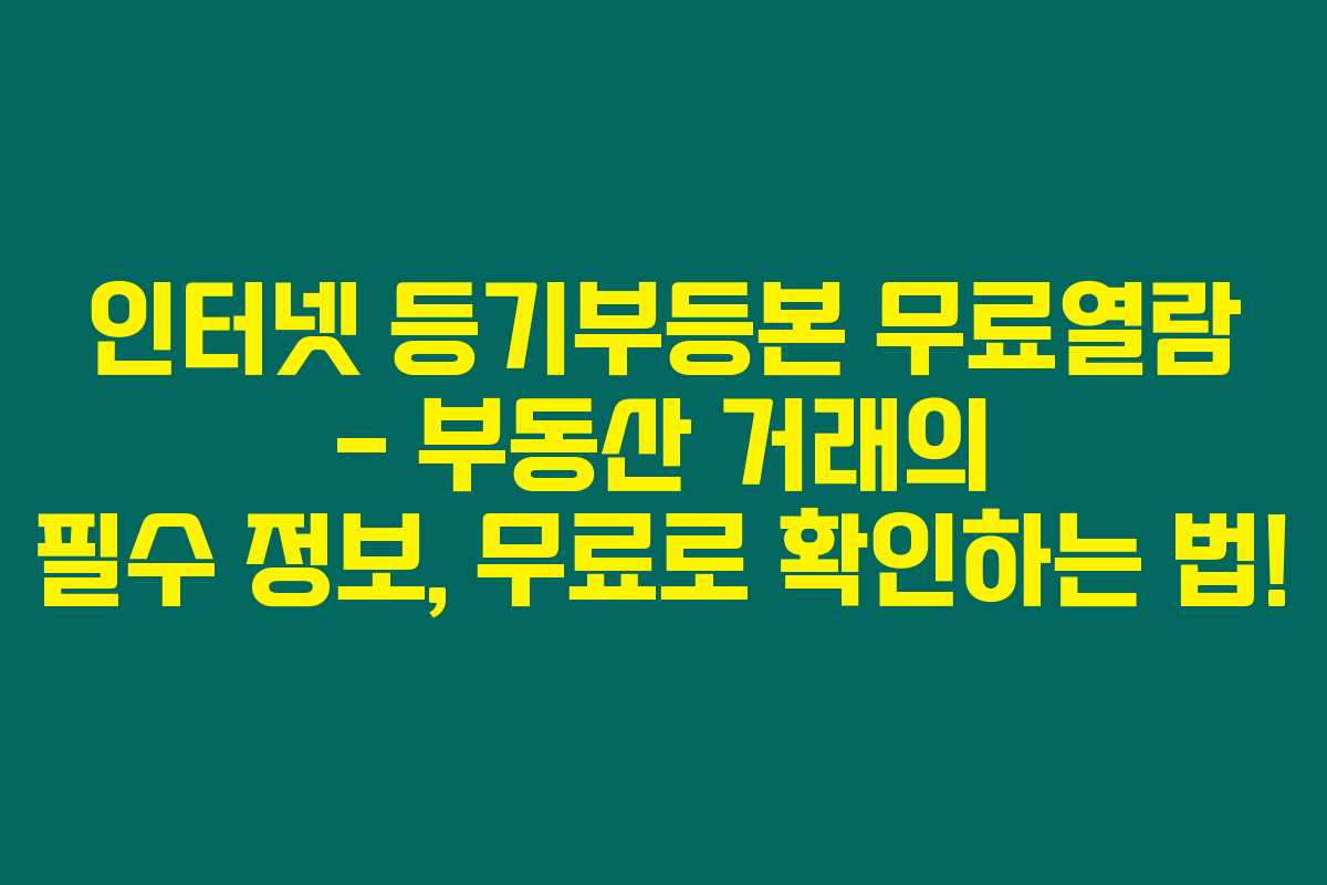 제가 직접 체크해본 바로는, 부동산 거래에서 인터넷 등기부등본은 반드시 확인해야 할 중요한 문서랍니다. 등기부등본은 부동산의 소유권, 권리관계 및 기타 중요한 정보를 포함하고 있어요. 하지만 발급비용이 발생해 부담스럽다고 느끼시는 분들이 많을 텐데요. 따라서 무료열람 방법에 대해 알아보니, 요즘은 간편하게 온라인으로도 무료로 확인할 수 있는 방법이 있더라고요. 아래를 읽어보시면 이 방법에 대해 자세히 알아보실 수 있을 거예요.