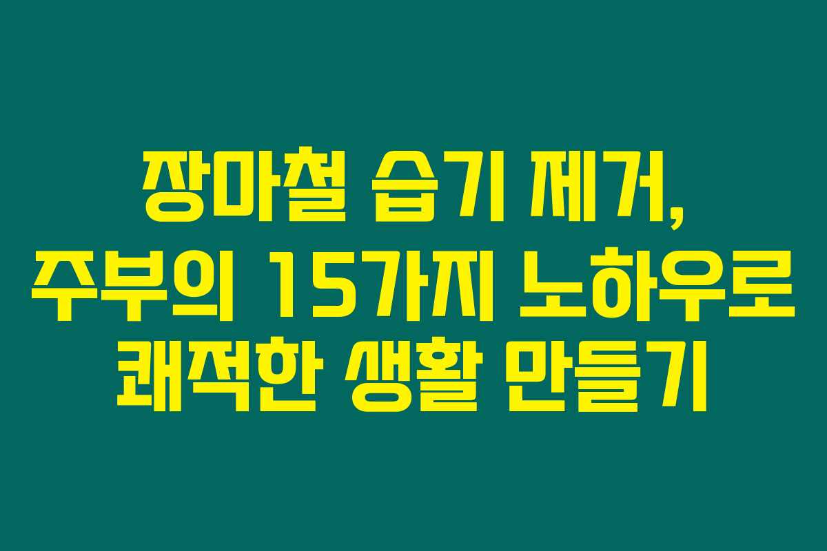 장마철이 다가오면 우리 집안의 습기가 증가해 불쾌한 환경이 조성됩니다. 이 글에서는 바로 장마철의 문제를 해결하기 위한 다양한 주부의 노하우를 공유합니다. 아래를 읽어보시면 장마철을 건강하고 쾌적하게 보내는 데 필요한 15가지 습기 제거 팁을 확인할 수 있습니다.