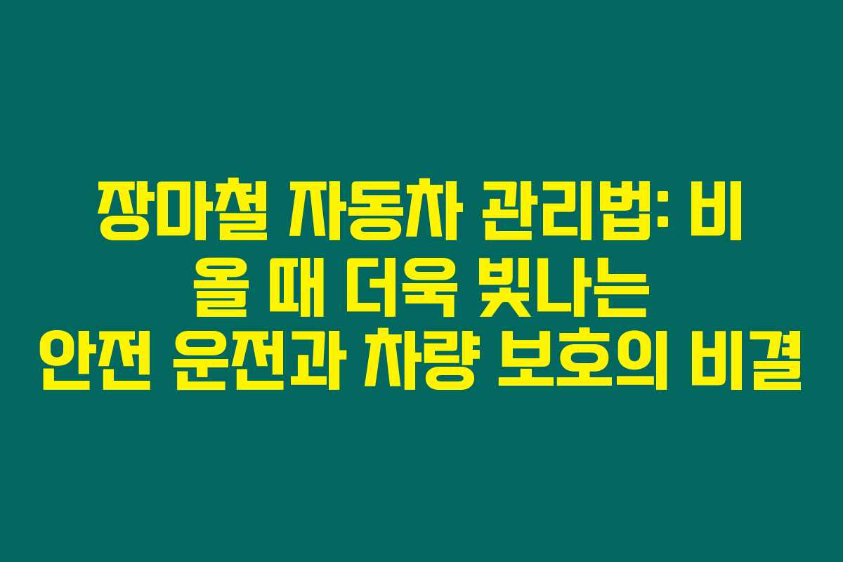 장마철은 잦은 비와 높은 습도로 인해 차량 및 운전의 안전 문제가 걱정되는 시기가 됩니다. 아래를 읽어보시면, 장마철에 안전한 운전과 차량 보호를 위한 필수적인 관리법을 통해 쾌적한 드라이빙을 즐길 수 있는 팁들을 제공합니다.