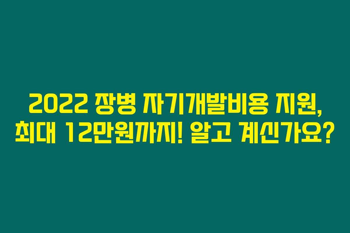 제가 직접 체크해본 바로는 2022년 장병 자기개발비용 지원이 복무 중인 모든 군인에게 큰 도움이 되는 프로그램이었습니다. 최대 12만원까지 지원받을 수 있는 이번 제도를 통해 장병들이 자기개발을 꾸준히 이어갈 수 있도록 돕고 있습니다. 아래를 읽어보시면 이 제도의 지원대상, 지원금액, 신청기간, 그리고 신청방법에 대해 자세히 알아보실 수 있습니다.