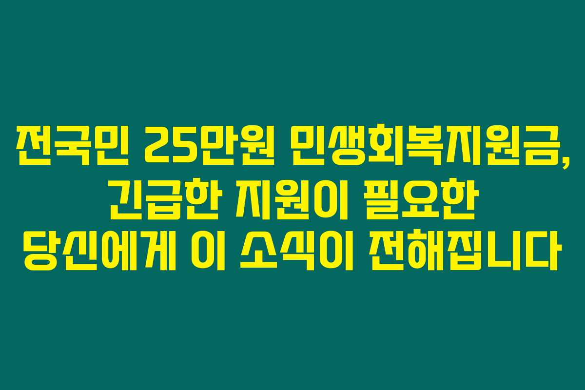 많은 국민들이 어려운 경제 상황 속에서 힘겨운 시간을 보내고 있는 가운데, 전 국민을 대상으로 25만원 민생회복지원금 법안이 국회에서 1차 통과했습니다. 제가 직접 알아본 바로는, 이 지원금이 어떻게 지급될지, 어떤 기준이 있는지에 대한 정보가 풍부해 많은 분들께 도움이 될 것 같습니다. 아래를 읽어보시면 자세한 내용을 확인하실 수 있을 거예요.