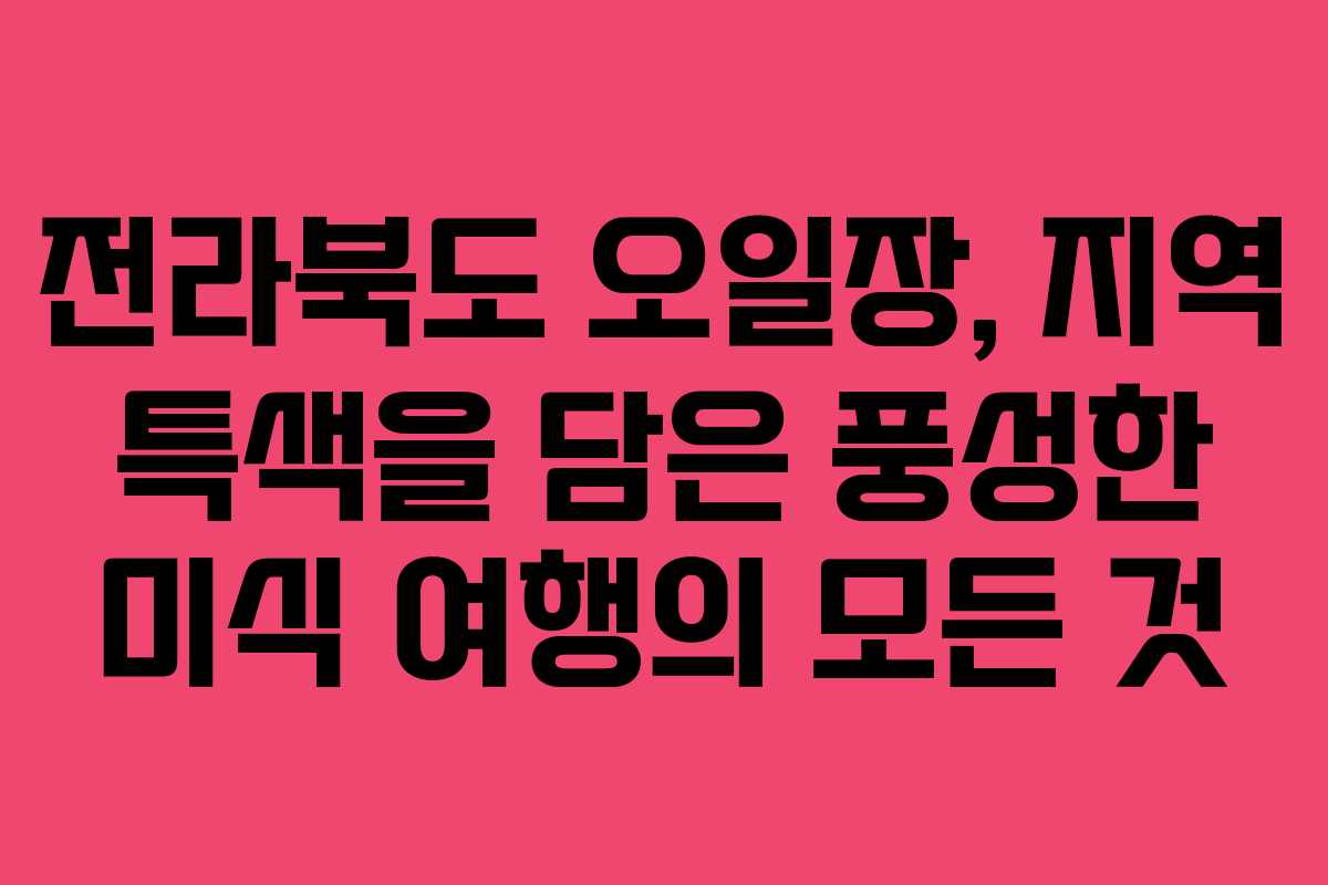 전라북도의 매력을 제대로 느끼고 싶다면 정겨운 오일장을 방문해 보세요. 오일장은 단순한 장터가 아니라 지역 주민들의 삶이 녹아 있는 소중한 공간입니다. 이곳에서는 신선한 농산물과 특산물들을 만날 수 있으며, 상인들의 따뜻한 사투리와 인심을 느낄 수 있습니다. 이번 글에서는 전라북도의 오일장에 대한 정보를 정리하고, 이를 통해 여행의 재미를 극대화하는 방법을 안내하겠습니다.