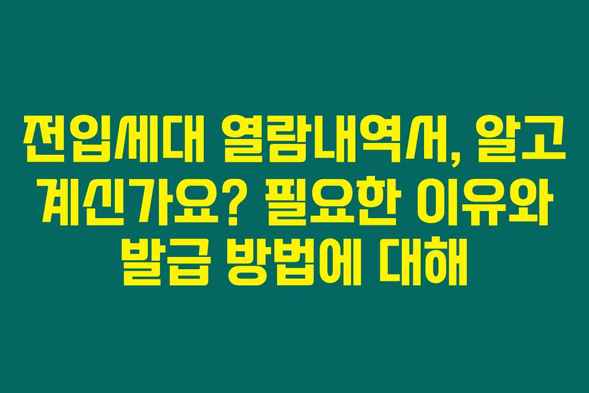 이 절차를 통해 보다 쉽게 전입세대 열람내역서를 발급받을 수 있어요. 필요한 경우 미리 준비하여 방문하는 것이 좋아요.