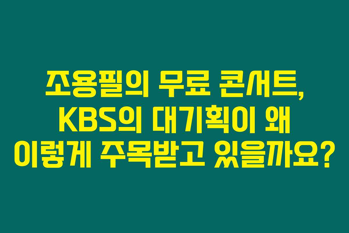 2025년 9월 6일, KBS에서 주최하는 조용필 무료 콘서트가 많은 사람들의 관심을 집중시키고 있습니다. 간혹 “왜 이렇게 화제일까요?”라고 질문하게 될 거예요. 아래를 읽어보시면 이번 공연의 특별한 점과 그 의미에 대해 자세히 알아보실 수 있습니다.