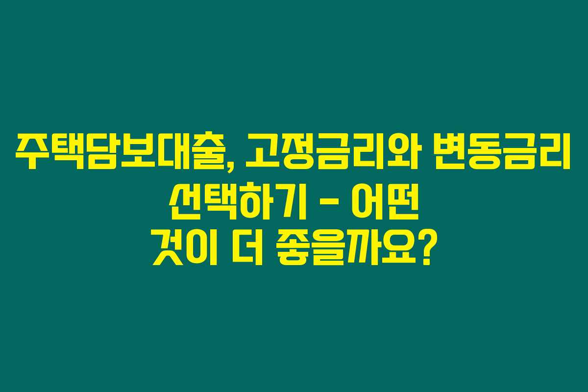 2. 고정금리 vs 변동금리 – 무엇이 더 유리할까?