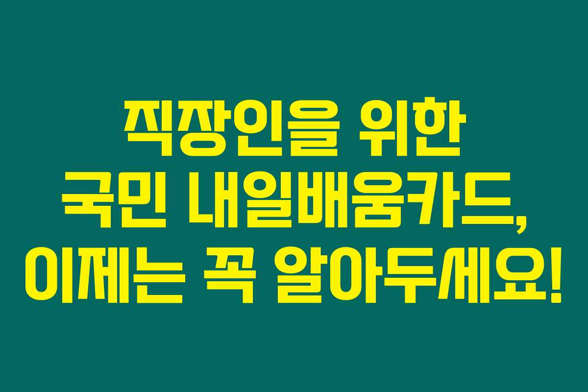 직장인 국민 내일배움카드는 무엇인지 궁금하신가요? 혹시 자격 요건이나 신청 방법대로 잘못하면 시간 낭비가 될까 걱정되시나요? 걱정하지 마세요! 제가 쉽게 설명해 드릴게요.