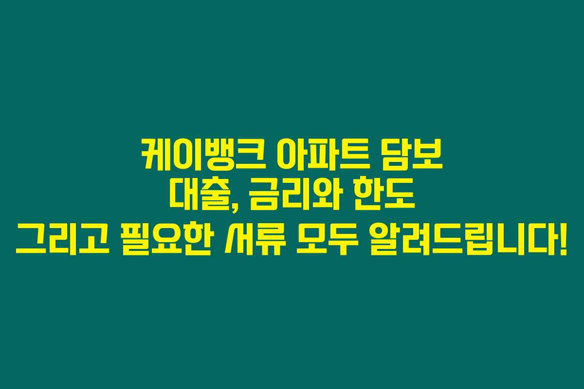 제가 직접 경험해본 결과로는, 케이뱅크의 아파트 담보 대출은 주택 금융을 고려하는 분들에게 상당히 유용한 옵션인 것 같아요. 특히 금리와 한도, 필요한 서류 면에서 다양한 정보가 많기 때문에, 대출을 계획하고 계신 분들은 아래를 읽어보시면 많은 도움이 되실 겁니다.