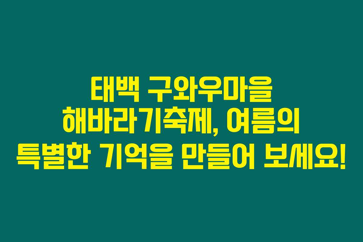 태백 구와우마을 해바라기축제는 여러분에게 잊지 못할 여름의 추억을 안겨줄 것입니다. 아름다운 해바라기와 다양한 프로그램이 여러분을 기다리고 있으니, 가족이나 친구와 함께 방문해 보세요. 태백의 매력을 목도하고, 마음 속 평화를 찾는 소중한 경험이 될 거랍니다.
