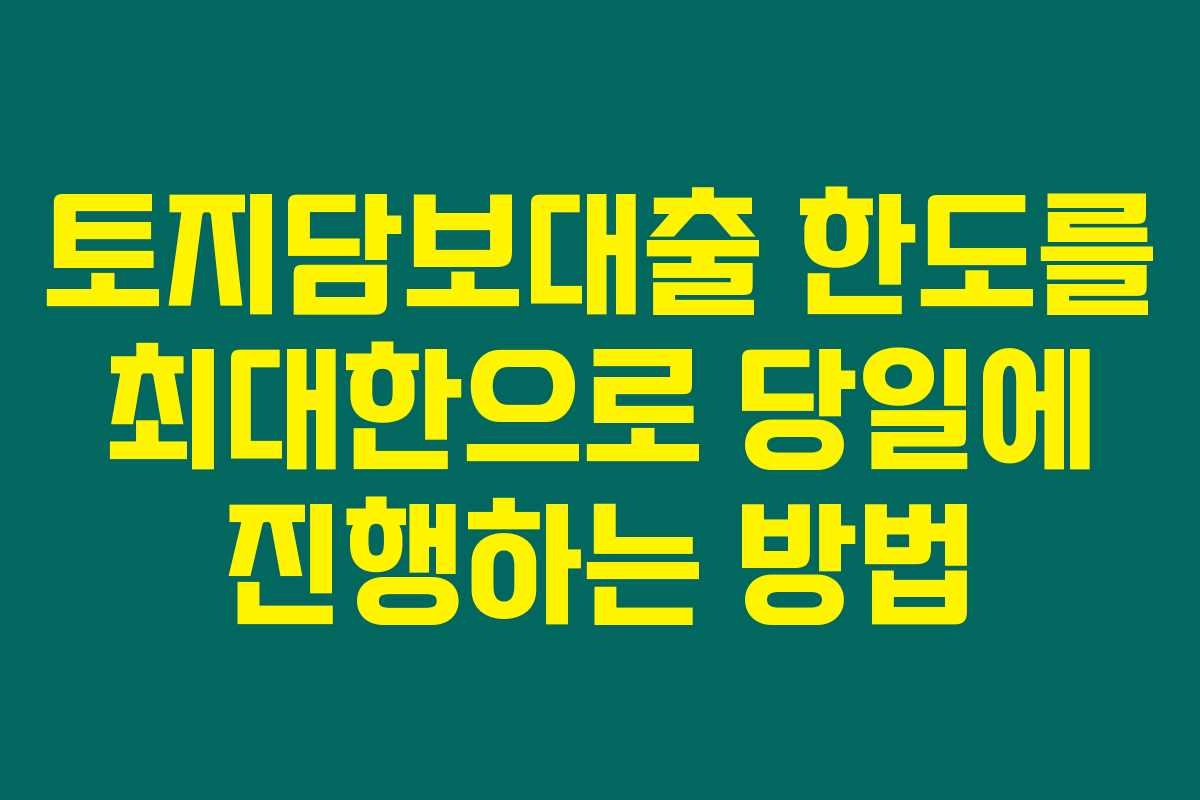 제가 직접 경험해본 결과로는, 토지담보대출을 진행하는 것에 대해 많은 분들이 궁금해 하시지만, 그 절차나 한도에 대해 잘 모르시는 경우가 많습니다. 특히, 당일 처리 가능한 대출 상품에 대해서는 더욱더 높은 관심을 보이는데요. 아래를 읽어보시면, 토지담보대출을 한도 최대한으로 당일에 진행하는 방법에 대해 자세히 알 수 있습니다.