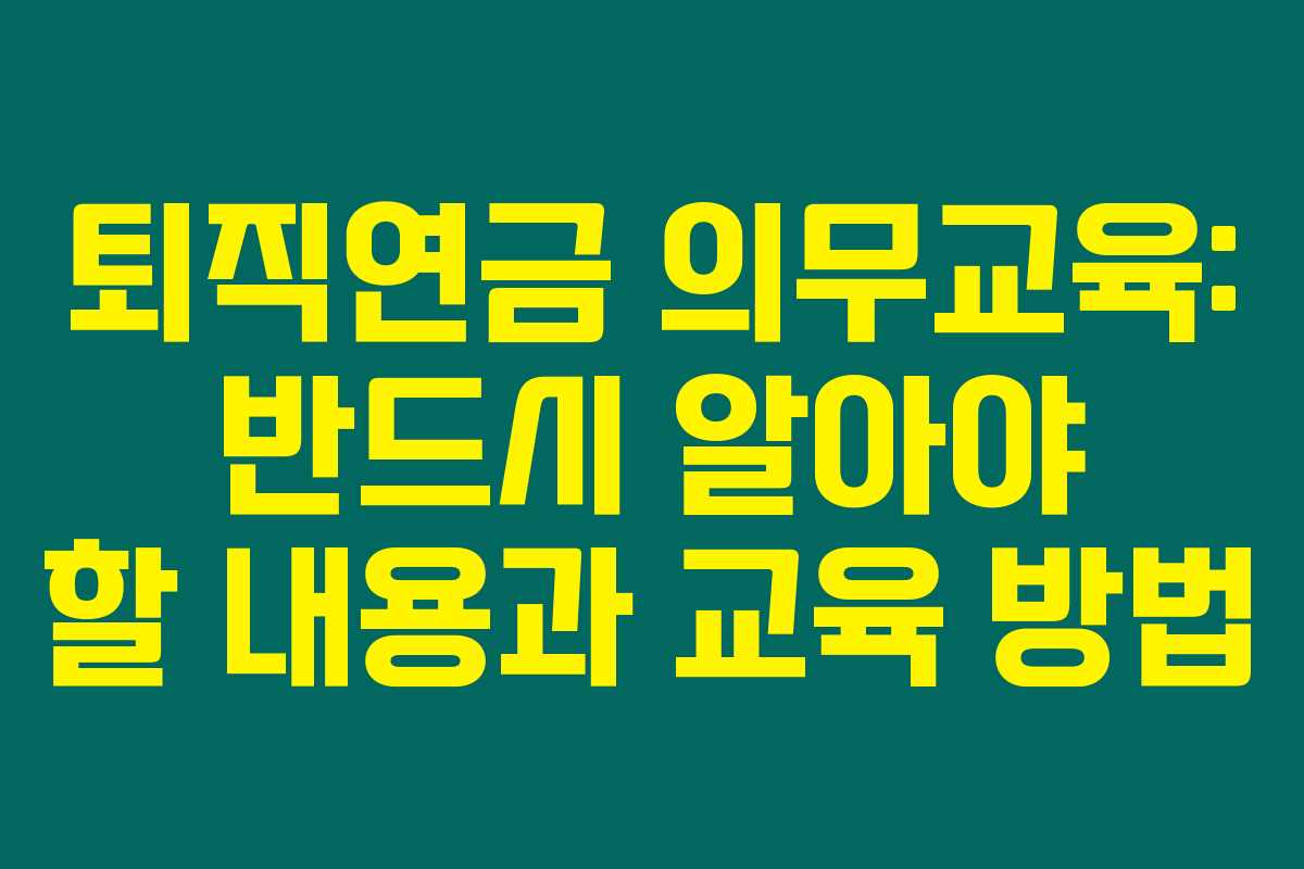 제가 직접 경험해본 결과로는 퇴직연금 의무교육은 모든 퇴직연금 가입자가 꼭 알아야 할 필수적인 교육입니다. 최근 근로복지공단에서는 퇴직연금 가입자의 권리 보호와 금융 이해도를 높이기 위해 교육을 강화하고 있습니다. 그래서 아래를 읽어보시면 퇴직연금 의무교육의 대상, 주요 내용, 교육 방법 등 종합적인 정보를 파악할 수 있을 거예요.