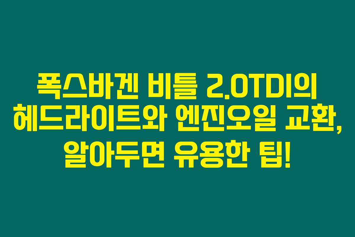 폭스바겐 비틀 2.0TDI를 타고 다니는 분이라면 한 번쯤 헤드라이트가 나가거나 엔진오일을 점검해야 할 순간이 올 거에요. 이런 문제들로 불편함을 겪고 계시다면 아래를 읽어보시면 아주 유용한 정보가 될 거랍니다. 차량 유지 보수는 소중한 차를 잘 관리하는 첫걸음이니까요!