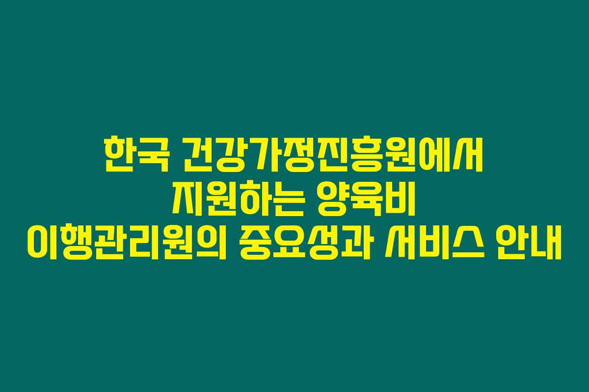 양육비 지급이 원활히 이루어지지 않는 가정에서는 경제적 어려움뿐만 아니라 심리적 고통까지 동반하게 됩니다. 아래를 읽어보시면 한국 건강가정진흥원의 양육비 이행관리원이 어떤 방식으로 도움을 줄 수 있는지 전반적으로 알아볼 수 있습니다.