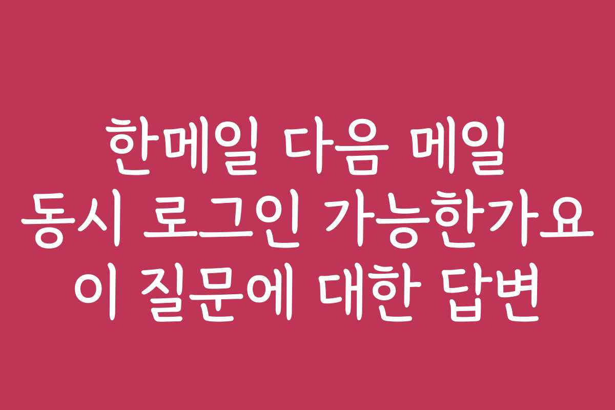 한메일 다음 메일 동시 로그인 가능한가요 이 질문에 대한 답변