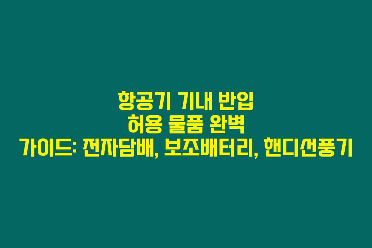 해외여행을 자주 다니는 저로서는 항공기 기내 반입 물품에 대한 규정이 어려울 때가 많았어요. 특히 전자담배, 보조배터리, 핸디선풍기 같은 일상에서 자주 쓰는 아이템이 기내에 반입 가능한지 궁금한 분들이 많을 것 같아요. 제가 직접 리서치해본 결과로는, 이 세 가지 물품이 기내에 반입이 가능한 조건과 규정에 대해 아래를 읽어보시면 많은 도움이 될 거예요.