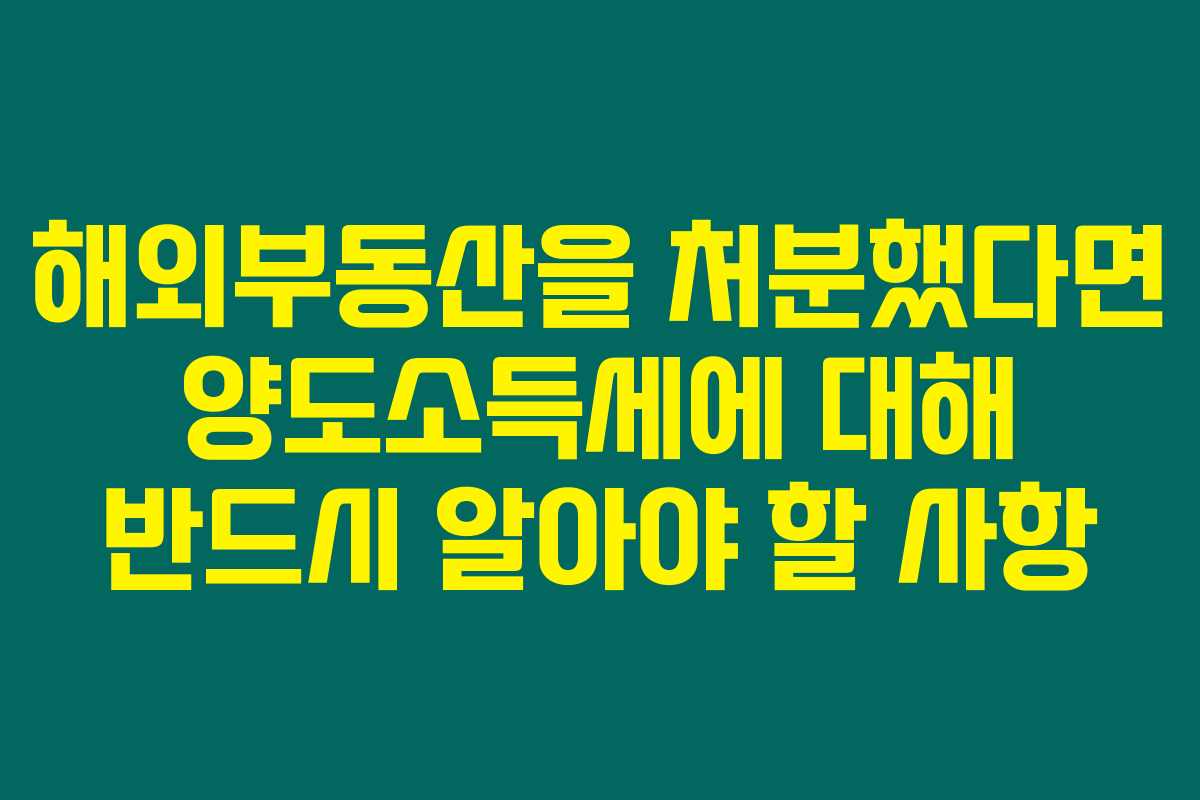 마무리하자면, 해외 부동산 양도소득세는 여러 가지 요소에 큰 영향을 받습니다. 각자의 상황에 맞는 정보를 잘 파악하고 전문가와 상담하여 정확한 세무 전략을 세우는 것이 중요합니다. 양도소득세를 성공적으로 관리하여 더 나은 재정 상황을 만들어가는 방법을 모색해 보세요.