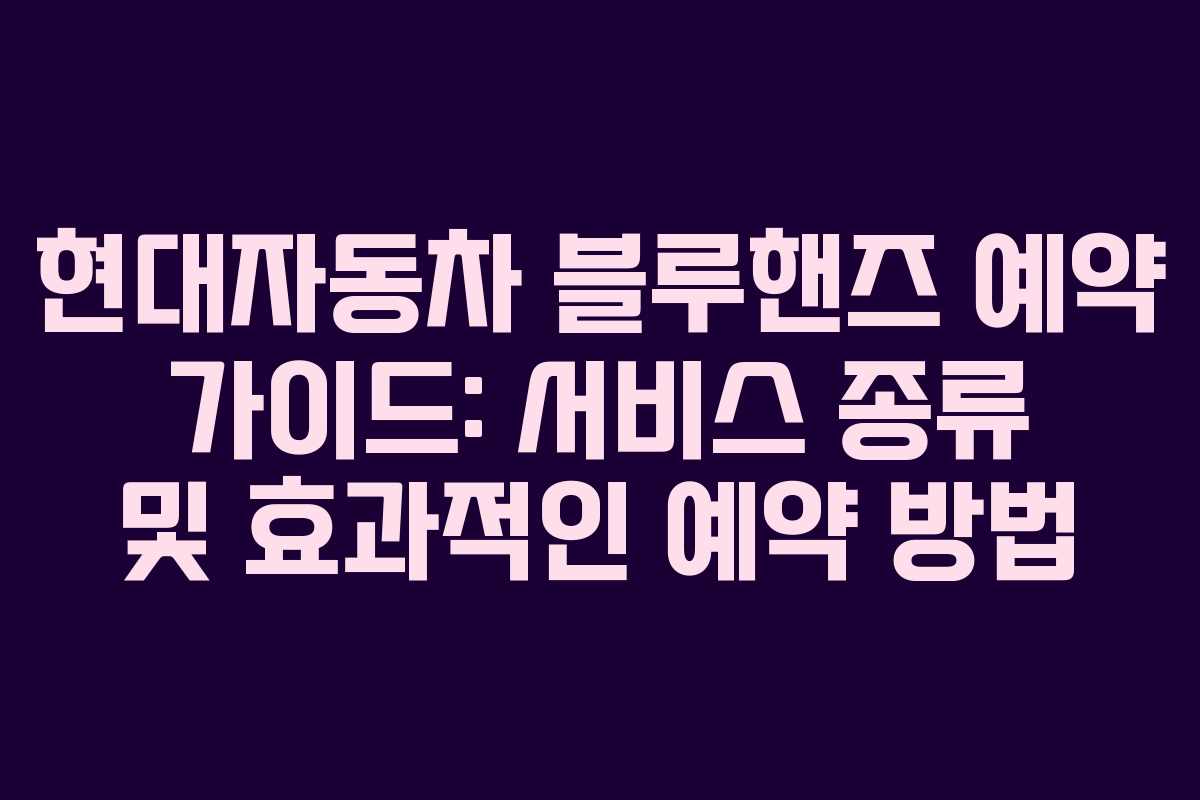 현대자동차 블루핸즈 예약 가이드: 서비스 종류 및 효과적인 예약 방법