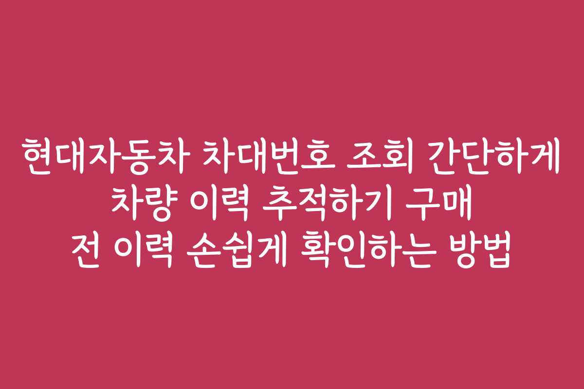 키워드: 현대자동차, 차대번호, 차량 이력, 중고차 구매, 차대번호 조회, 사고 이력, 정비 이력, 자동차 구매, 차량 정보, 차량 상태, 차량 소유 이력
