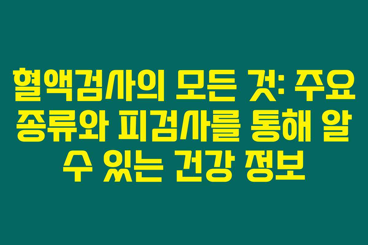 제가 알아본 바로는 혈액검사는 우리 몸의 건강 상태를 파악하는 데 있어 가장 중요한 도구 중 하나에요. 혈액 내의 성분과 상태를 확인함으로써 여러 질병을 조기에 발견하고 예방할 수 있으니, 정기적인 혈액검사는 건강 관리에 특히 중요하답니다. 아래를 읽어보시면 다양한 혈액검사 종류와 보건소 피검사 항목에 대해 자세히 알 수 있을 거에요.