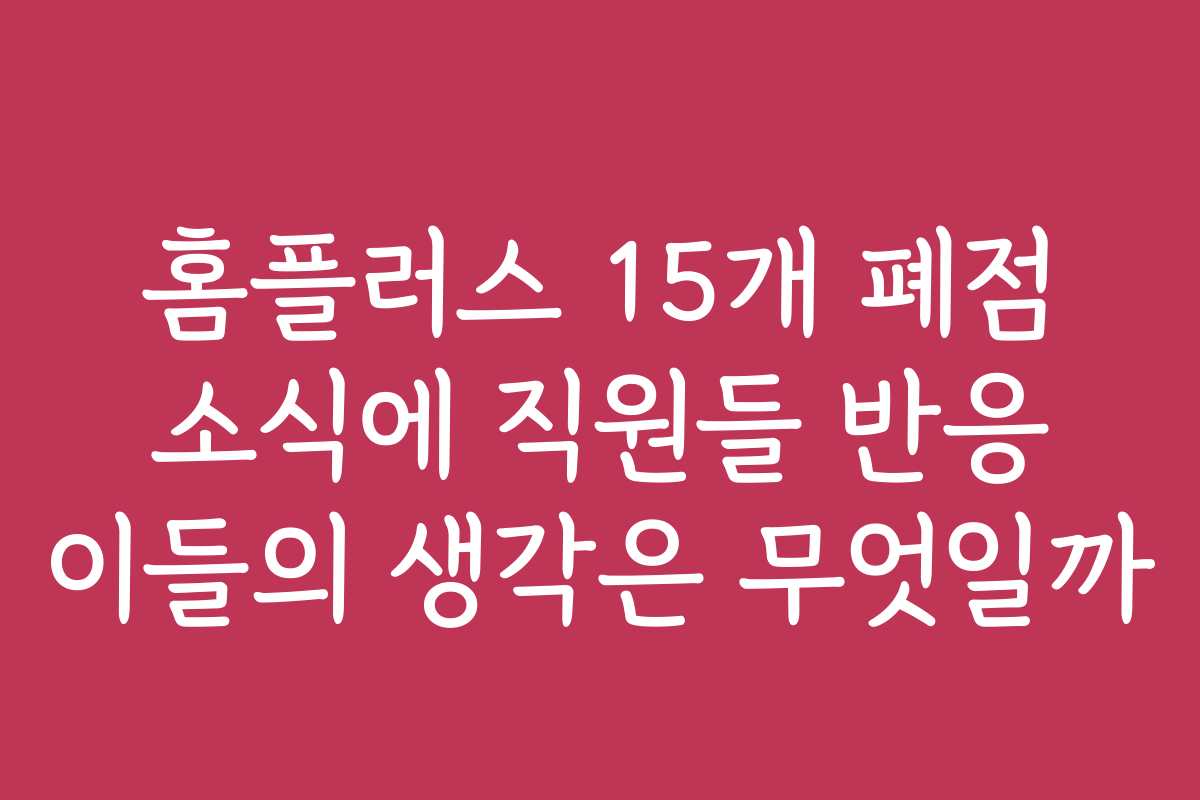 홈플러스의 15개 점포 폐점 소식에 대한 직원들의 반응은 매우 다양합니다. 일부 직원들은 실직의 두려움과 불안감을 표출하며, 다른 직원들은 이번 기회를 통해 새로운 전환점을 맞이할 것이라는 긍정적인 의견을 나누기도 했습니다.