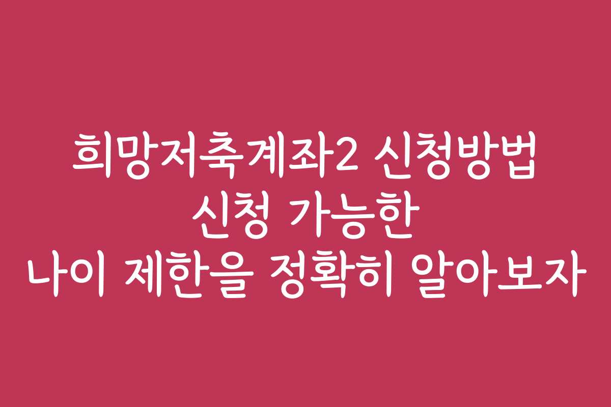 희망저축계좌2는 저소득층의 자산 형성을 지원하는 제도로, 신청 방법과 나이 제한에 대해 많은 사람들이 궁금해하고 있습니다. 이 포스팅에서는 희망저축계좌2의 신청 방법과 나이에 대한 정확한 정보를 제공합니다. 나이에 따른 제한 사항과 신청을 위한 팁을 통해 여러분의 재정 계획에 도움을 드리겠습니다.
