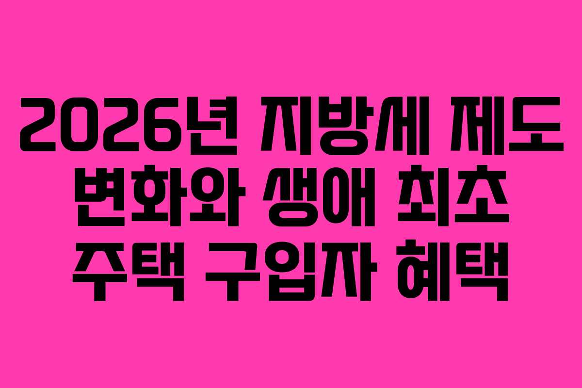 2026년이 시작되면서 지방세 제도에서 몇 가지 중요한 변화가 있었습니다. 이번 변화는 특히 생애 최초로 주택을 구입하는 사람들에게 더 많은 혜택이 주어지며, 인구감소지역에 대한 세제 지원이 신설된 점이 두드러집니다. 이러한 내용을 통해 주택 구매에 대한 이해를 돕고자 합니다.