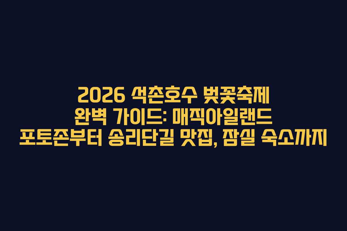 벚꽃을 만끽하기 위해서는 사전에 축제 정보를 충분히 아는 것이 중요한데요. 다음 표는 2026년 석촌호수 벚꽃축제의 필수 정보를 정리한 것입니다.