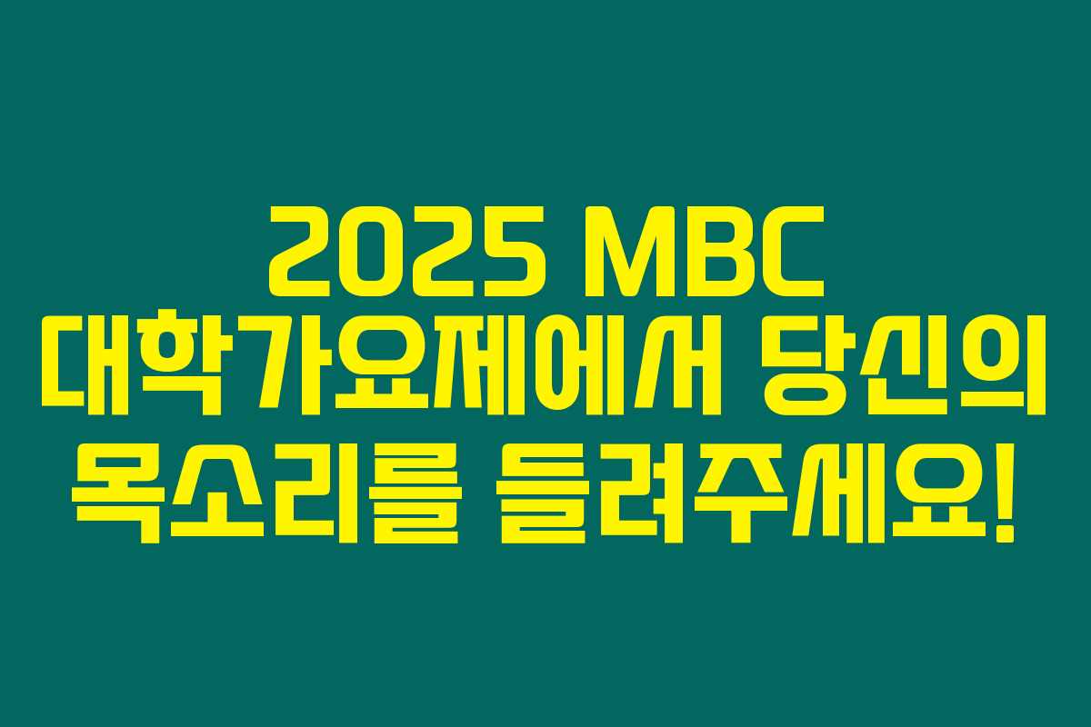 2025 MBC 대학가요제에 참여하여 여러분의 목소리를 들려주세요. 꿈을 향해 나아가는 이 특별한 순간을 놓치지 마세요. 지금 바로 투표하고 방청 신청하세요!